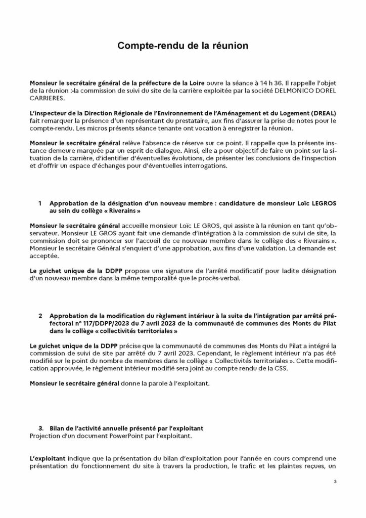 Commission de suivi de site Delmonico-Dorel Carrières du 21 novembre 2025